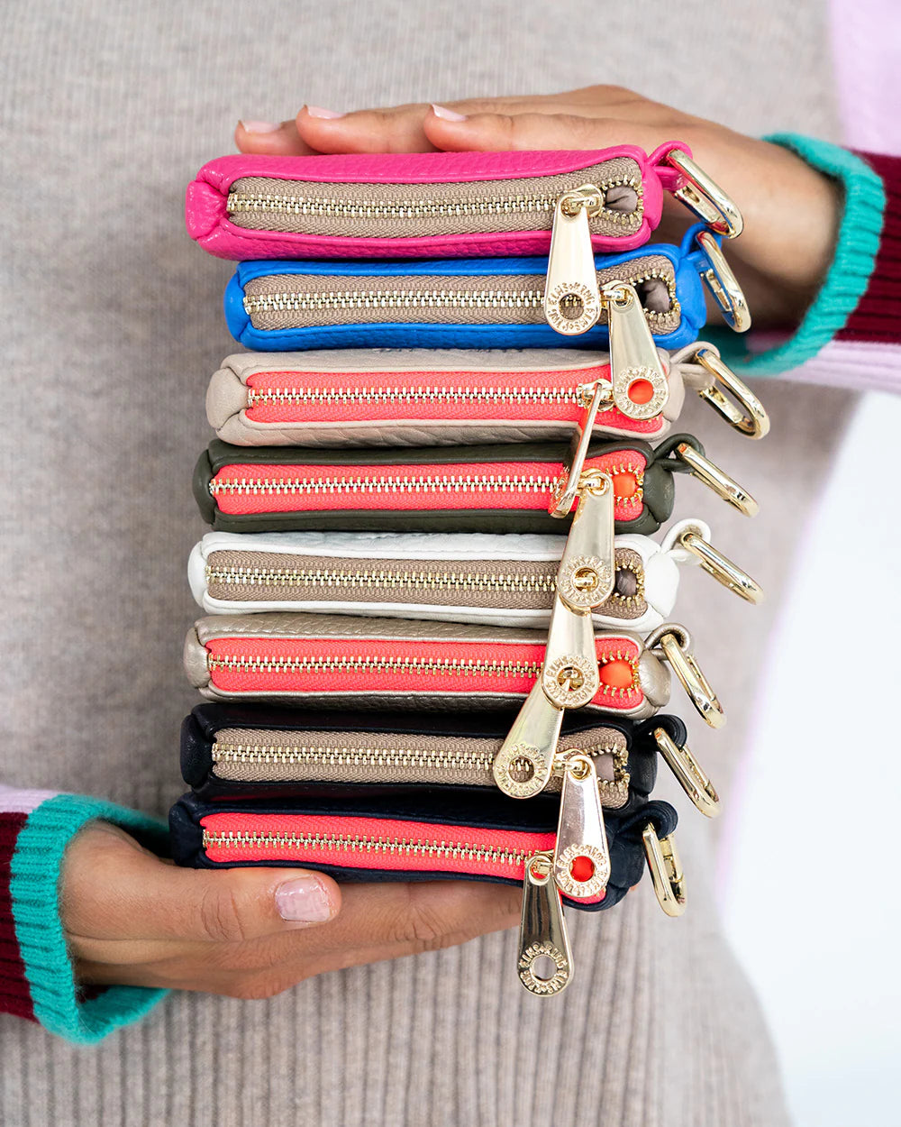 The Elms+King Camden Coin Purse is made from recycled premium polyurethane with a slim line construction. The coin purse features a top zipper closure and handy side mounted clip.
