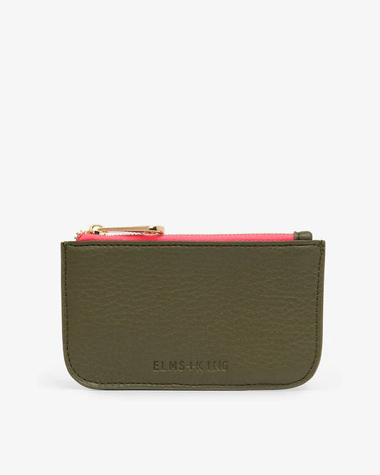 The Elms+King Centro Wallet is made from recycled premium polyurethane, with a slim line construction. The wallet features a top zipper closure, centre pocket and 8 rear mounted card slots.