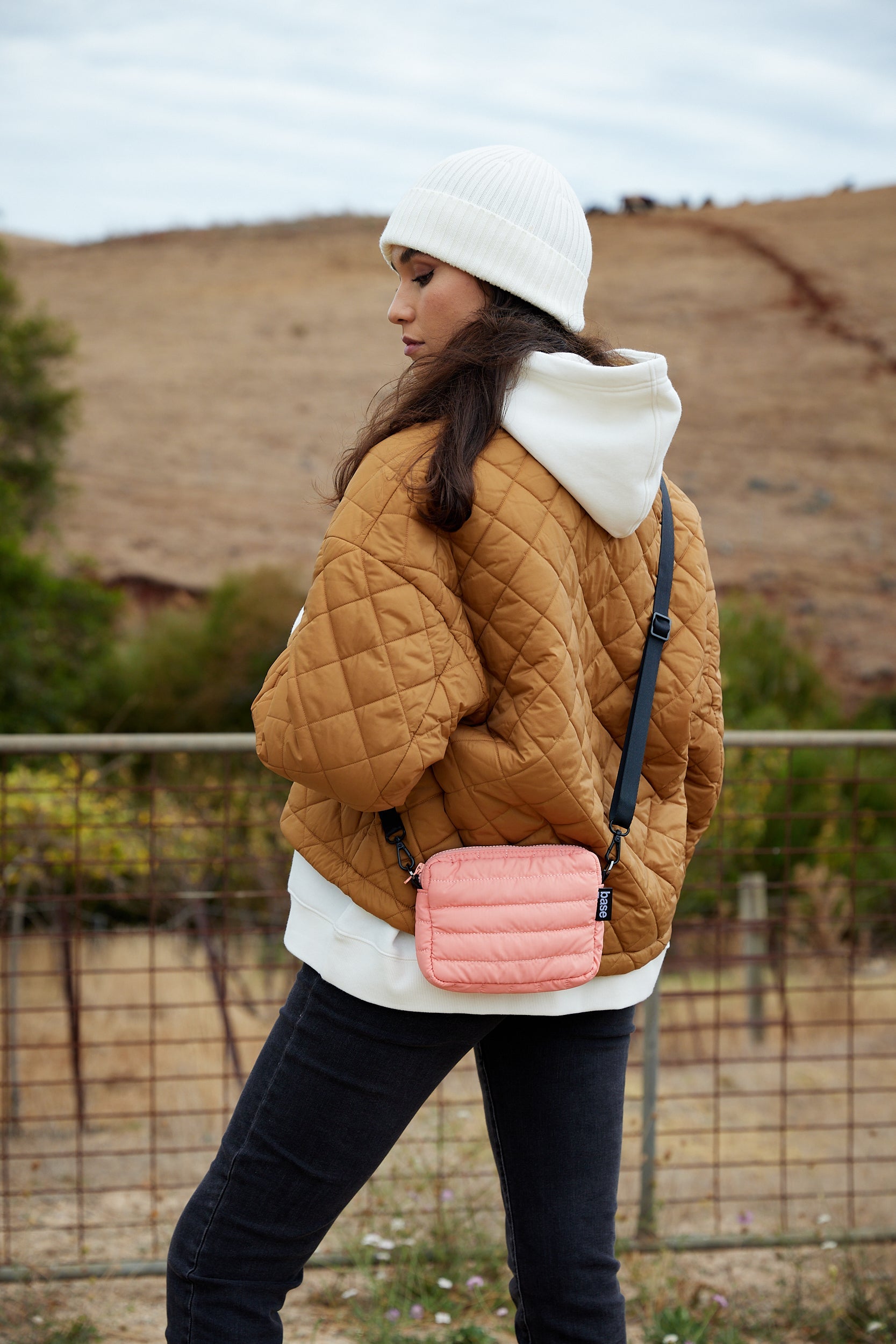 A bold style statement in a conveniently small, ultra-lightweight package. Mini base updates our signature small crossbody bag in our soft, cloud-like fabric.
