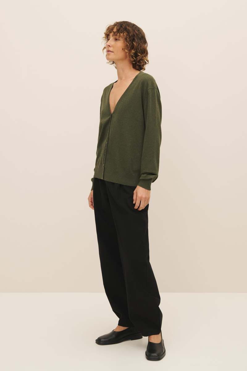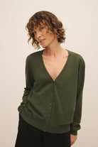 An elevated, lightweight style, made from 100% certified Fairtrade organic cotton. The Vale Cardigan has a relaxed fit and flattering deep V neckline. It fastens through the front with nut buttons, and features rib at the cuff and hem. Can be worn as a top or unbuttoned as a light layer over dresses and tees.