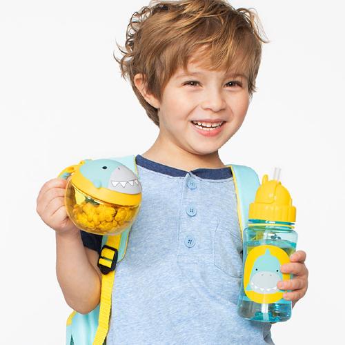 Featuring cute animal faces, this kid-sized bottle is perfect for water, juice or whatever your little one likes to sip. Easy for little hands to grab & go, it has a flexible straw, flip lid and a handy grab-strap that attaches to anything.