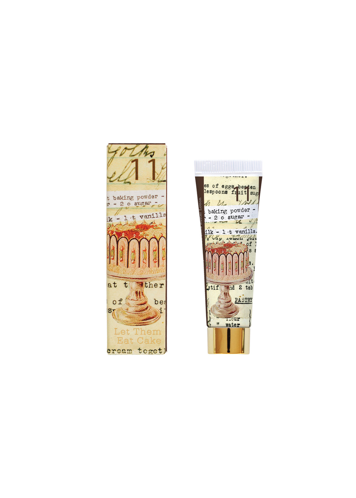 The Let Them Eat Cake hand cream in a petite size is a sumptuous skin-pleaser for when you are out and about. Formulated with shea butter, green tea and vitamin e for intense hydration and scented with sugar cane, coconut milk, vanilla orchid and white musk your skin will be hydrated and lightly scented.