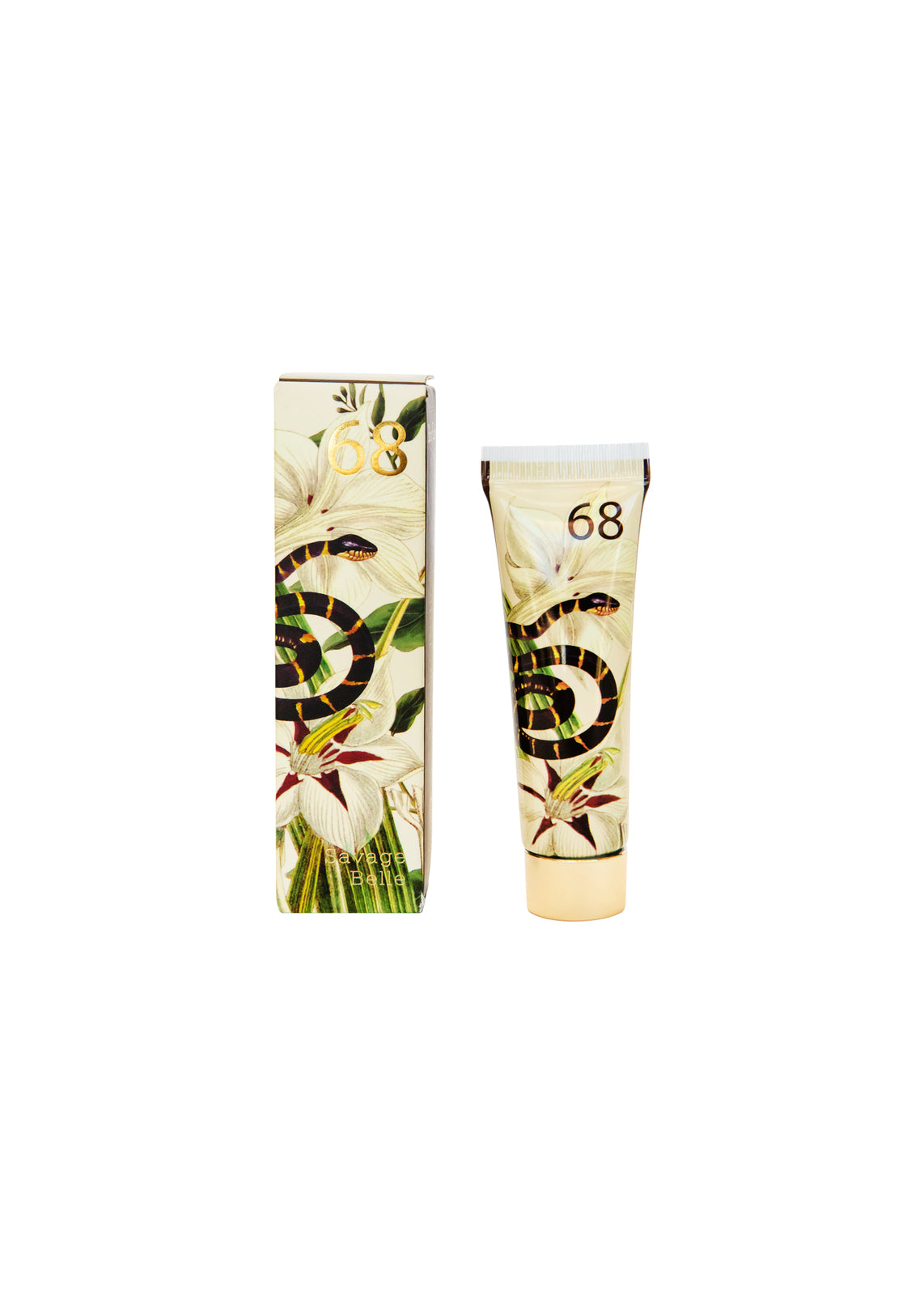 The Savage Belle hand cream in a petite size is a sumptuous skin-pleaser for when you are out and about. This hand cream is formulated with shea butter, green tea and vitamin e for intense hydration. Scented with warm ginger, bergamot, charcoal accord and wisteria your skin will be hydrated and lightly scented.