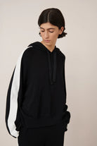 The Contrast Hoodie offers an oversized fit and is detailed with an exaggerated contrast greige stripe down the sleeves. Crafted from heavyweight organic cotton jersey, it features raglan sleeves, a functional drawcord through the hood and a front patch pocket. Wear on its own or pair with the Contrast Trackpant.
