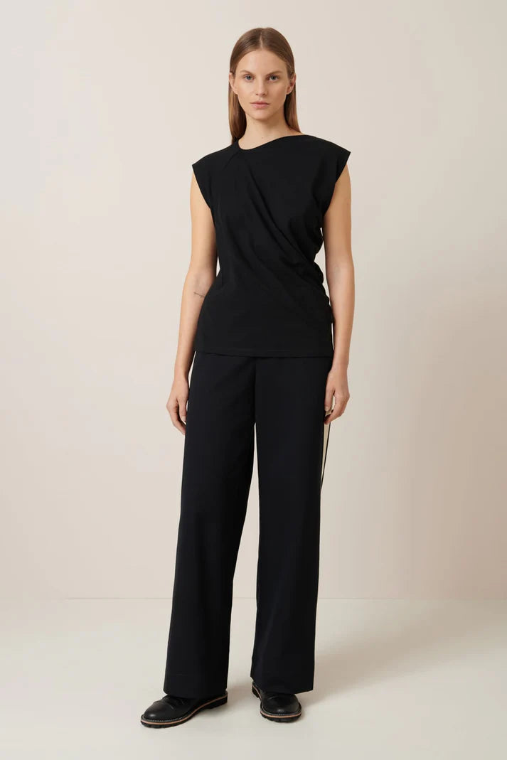 Combining comfort and elegance, the Hera Top is an asymmetric style top with a bias cut front panel that creates a unique diagonal drape. The top is a standard fit with a wide neckline and is made in a heavyweight organic cotton jersey.