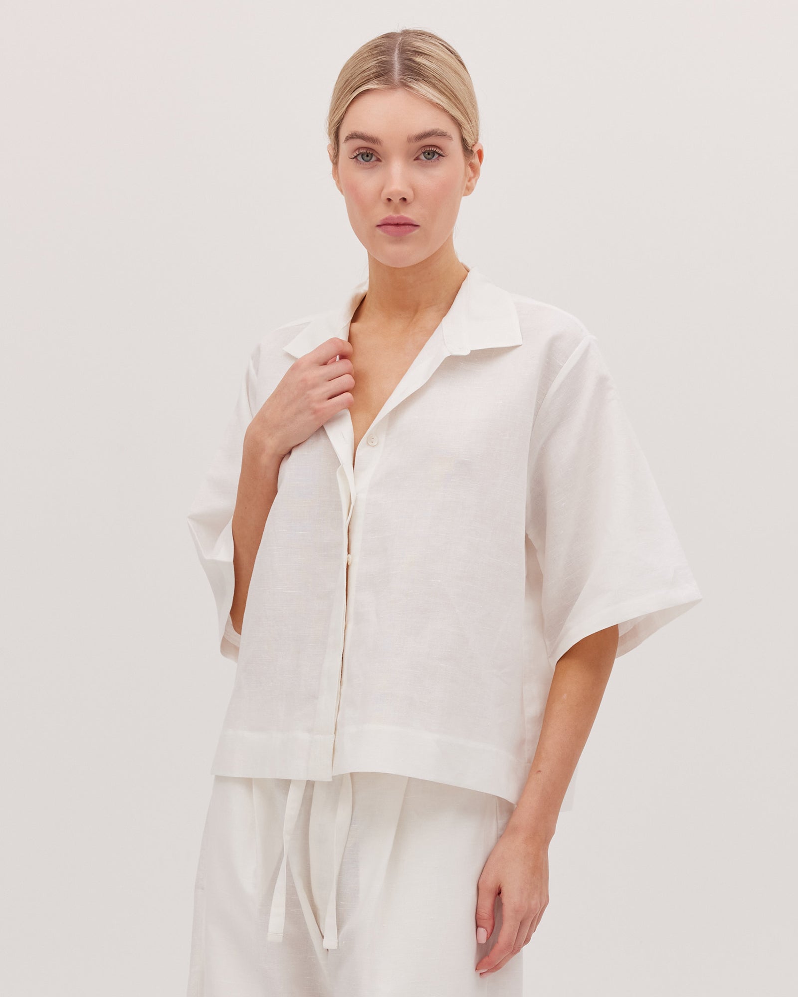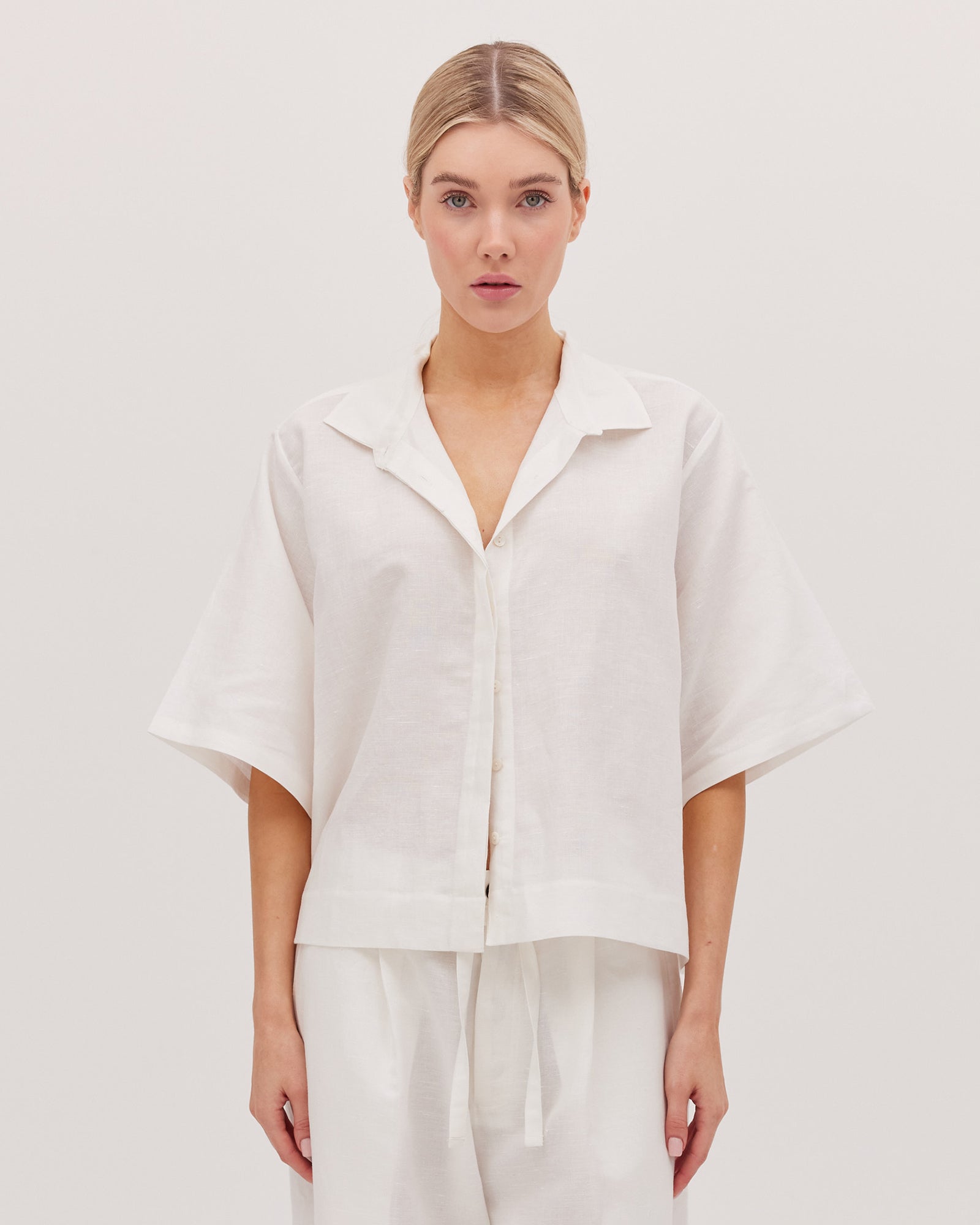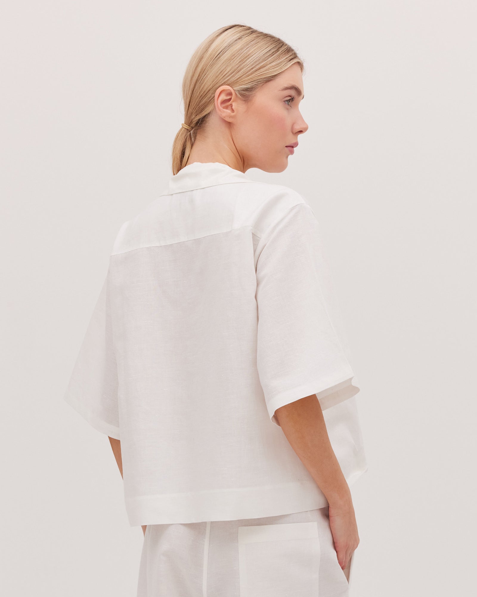 Introducing The Cropped Shirt made from our signature Hemp & Cotton. This shirt is an boxy fit and features, french seams and natural shell buttons. The Cropped Shirt is an elevated piece that can be styled for any occasion.