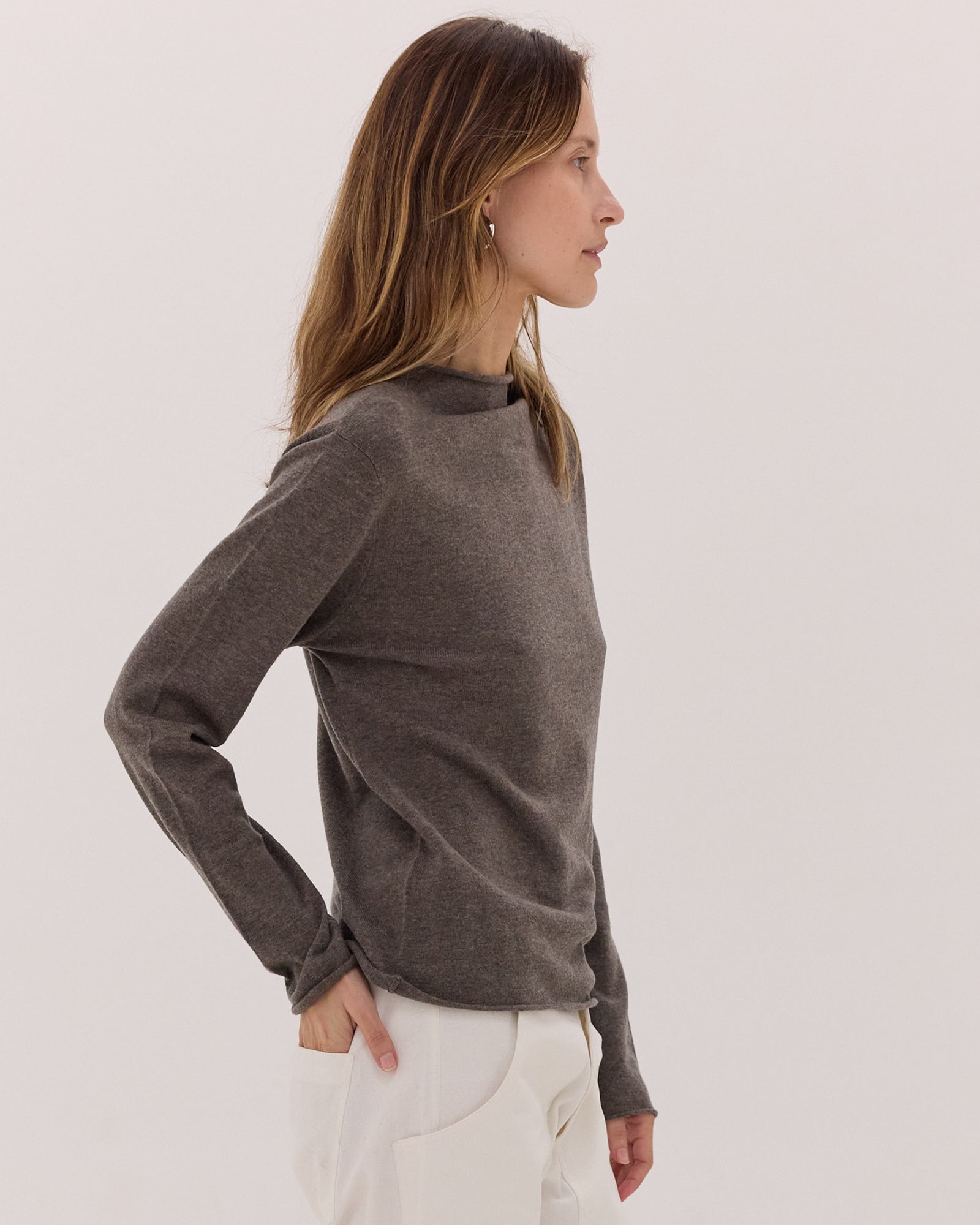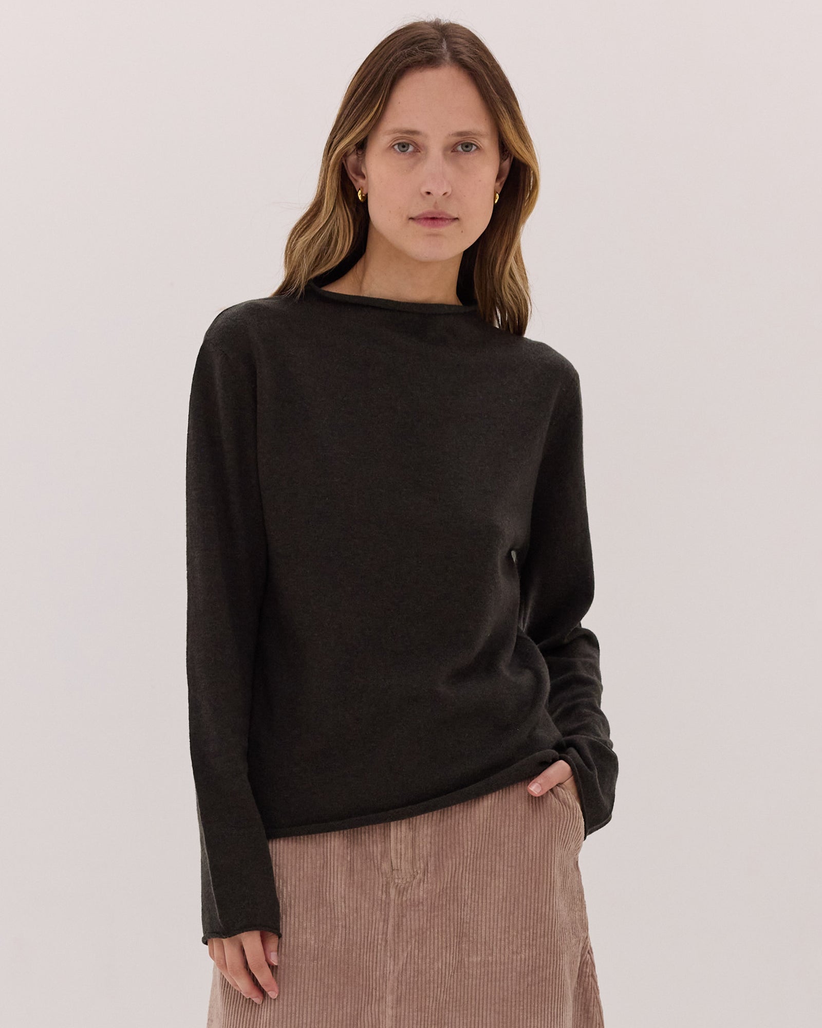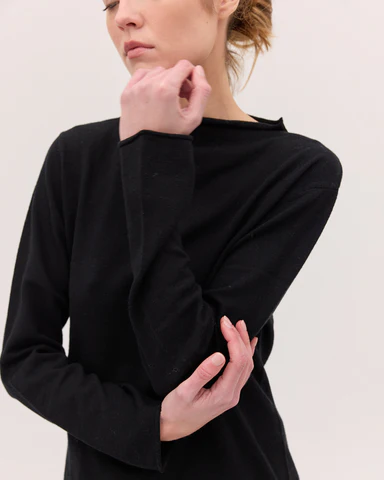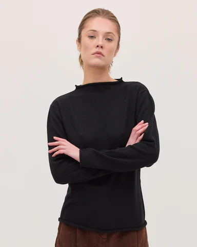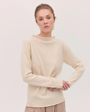 Timeless and sophisticated, The Funnel Neck Top blends comfort with modern elegance. Its luxurious blend of soft organic cotton-merino wool and relaxed funnel neckline create an effortless silhouette—perfect for layering or wearing on its own.
